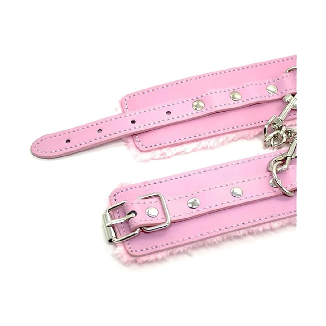 The interior features soft, plush padding that keeps the skin safe. A strong metal chain connects both cuffs allowing for controlled positioning and guided movements during intimate moments. They can be worn for a long time without discomfort because they balance durability and comfort.